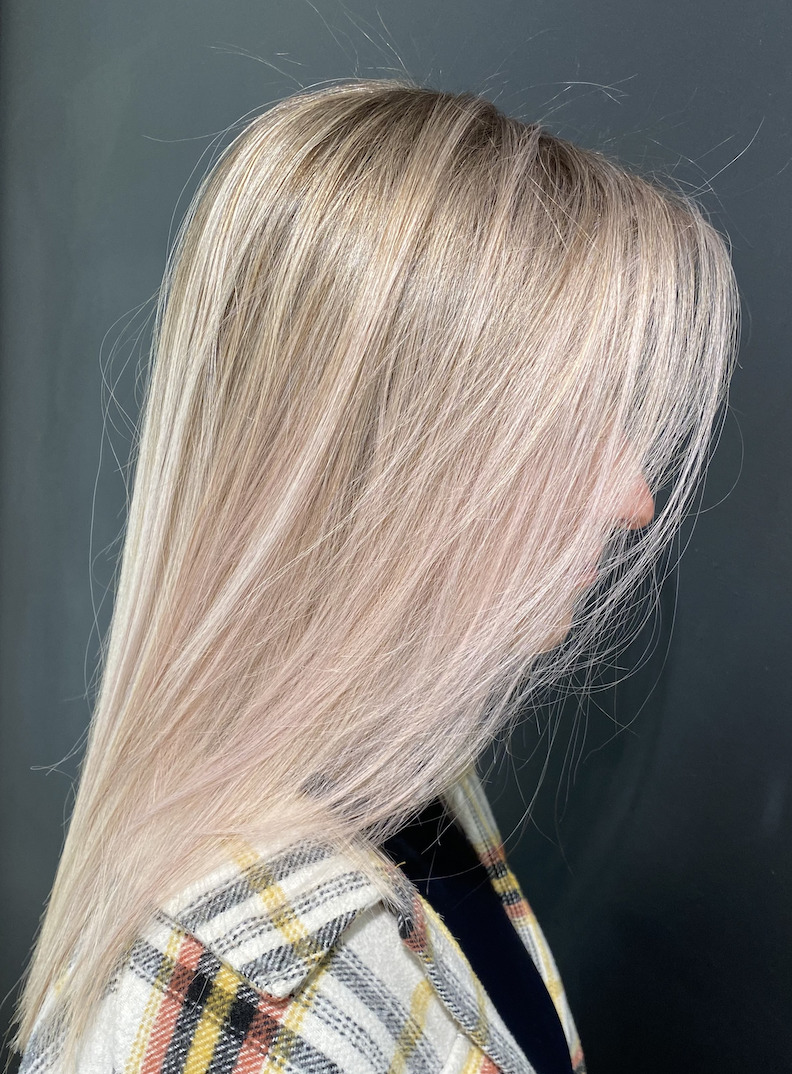 А при осветлении волос или в работе с сухими и ранее поврежденными волосами обязательно используется дополнительный уход от Olaplex или Kevin Merphy.